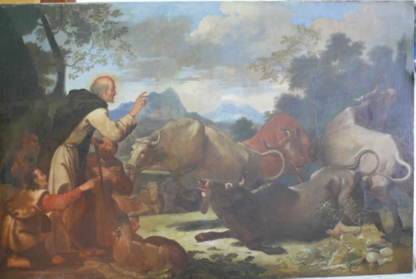 “San Pietro Celestino Ammansisce i buoi infuriati” di Carl Borromäus Andreas Ruthart (XVII sec)
